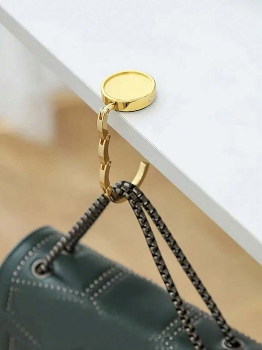 1Pc Folding Handbag Hanger, Stylish And Portable Business Travel Table Hanger, Convenient Hook Without Pasting, Creative Bag Hanger, Handbag Hook, Folding Storage Rack, Portable Key Chain Alloy Table Hook, Hardware Home Storage Box. It Can Be Used For Home Travel And is Suitable For Both Men And Women.