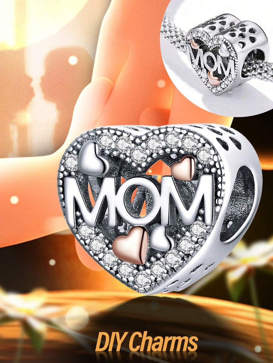 1Pc Glamorous Real 925 Sterling Silver Mother's Love Heart Charm Bead for Women Fit Bracelets Bangles DIY Jewelry Making Girlfriend Gift Fine Ladies Jewelry