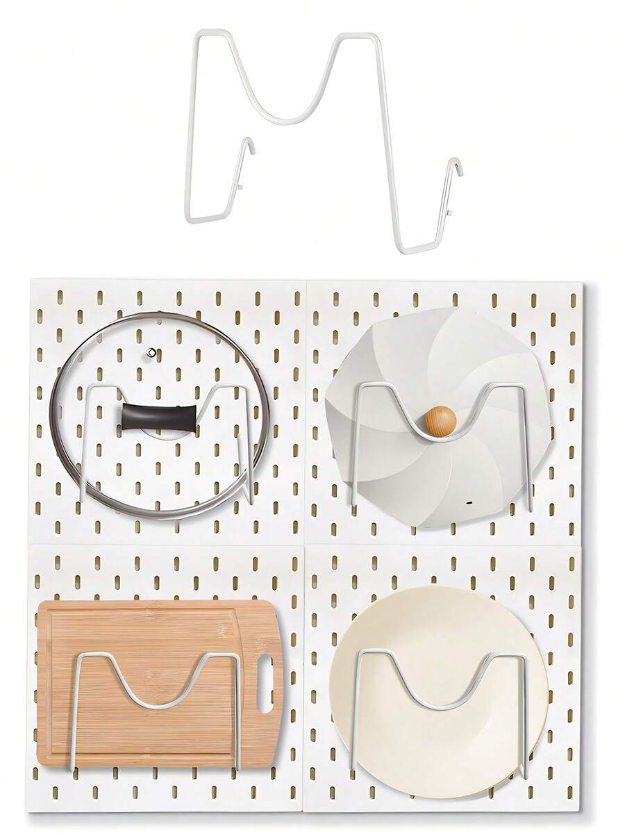 SHEIN Basic living 1Pc Pegboard Accessories Pot Lid Holder Hook For Organizing Pot Lid Cutting Board On Pegboard,Pegboard Hooks Kit (White)