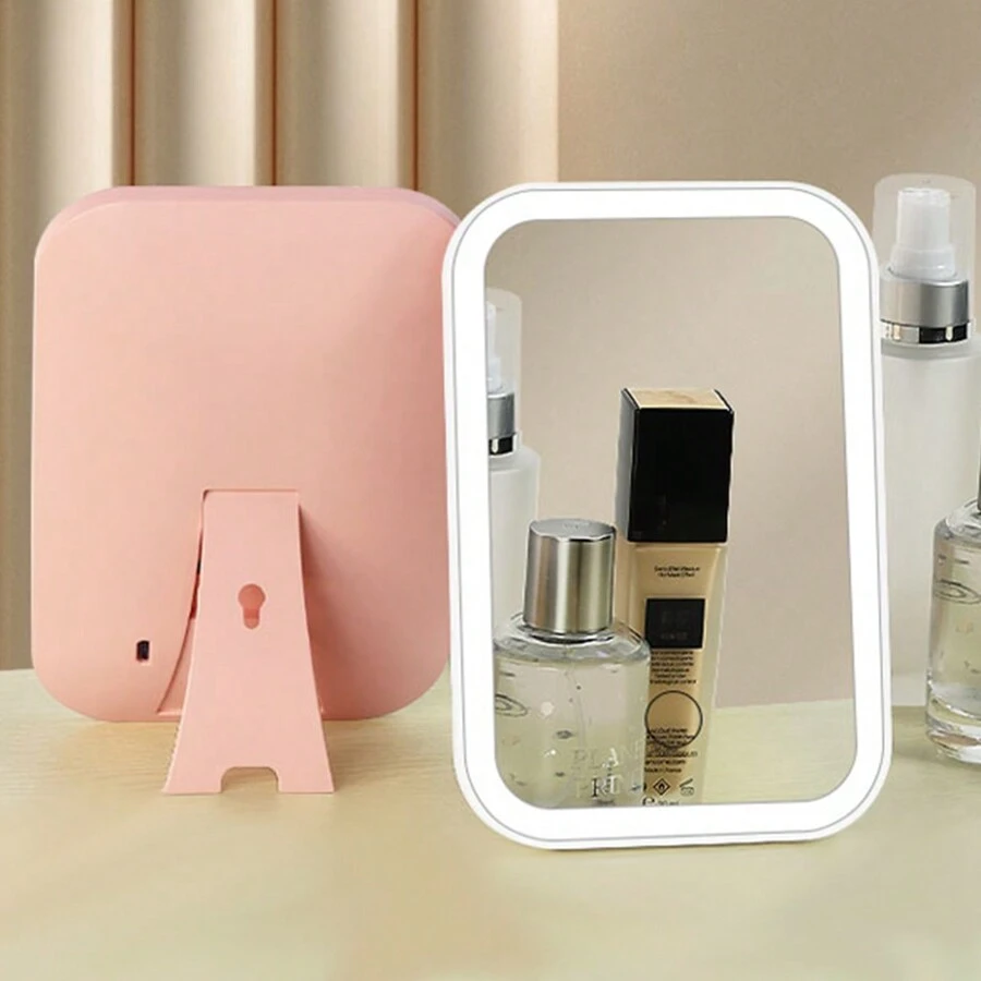 1Pc Portable Led Makeup Mirror, Desk Type With Folding Frame, Rechargeable, Adjustable Brightness, Desktop Vanity Beauty Mirror, Handheld Mirror Vanity Mirror For Home Tabletop Decoration, Bathroom, Dresser Vanity & Countertop Bedroom Travel Dormitory Mirror Women Gift