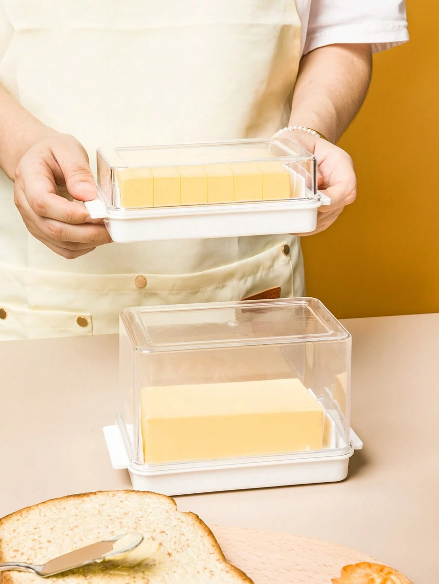 SHEIN Basic living 1Pc Quantitative Cutting Butter Dish, Cheese Slicer Storage Box Butter ,Plastic Butter Dish With Dividable Lid, Butter Airtight Preservation Container Box,Keeper Container for Freezer Countertop Butter Storage and Accurate Cutting,