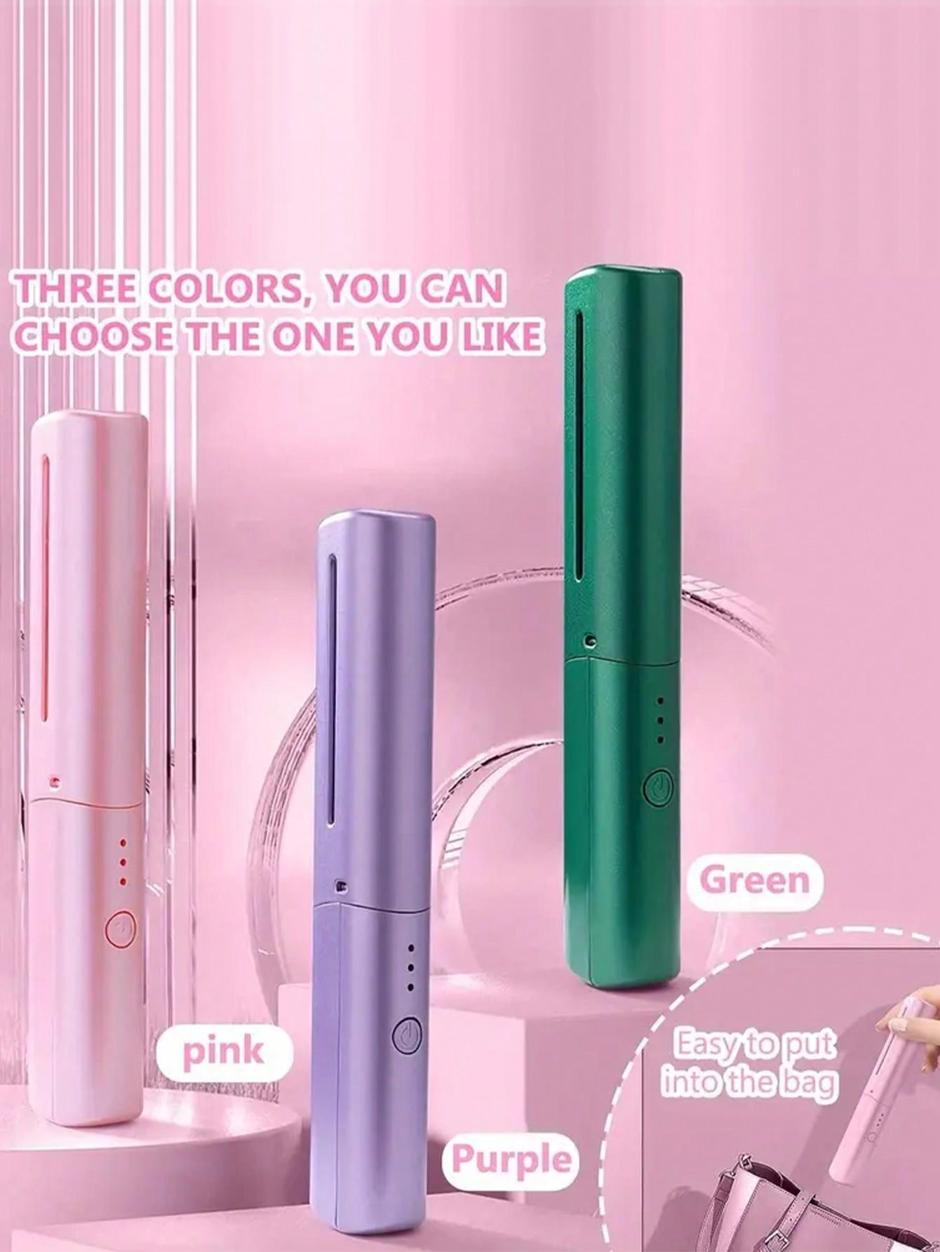 1Pc Rechargeable Mini Hair Straightener & Curling Iron Comb, Portable Straightening Brush With Negative Ion & Hot Comb, Cordless & Lightweight, Hair Styling Tool For Travel & Dormitory Without Power Plug Wavy Hair Styling Tool
