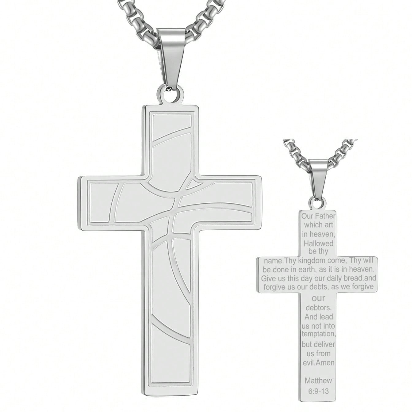 1Pc Silver Basketball Athlete Inspirational Bible Verse Cross Pendant Necklace For Men Stainless Steel Scripture Lord'S Prayer 24 Inch Chain Jewelry Gifts For Boy Son Dad