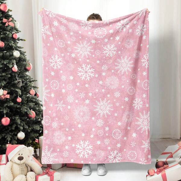 1Pc Snowflake Pink Christmas Blanket, Christmas Modern College Style Flannel Soft Blanket 130×150Cm/150×200Cm, Suitable For Winter Christmas Party Gifts, Bed/Sofa/Bedroom/Dormitory/Girls/Children