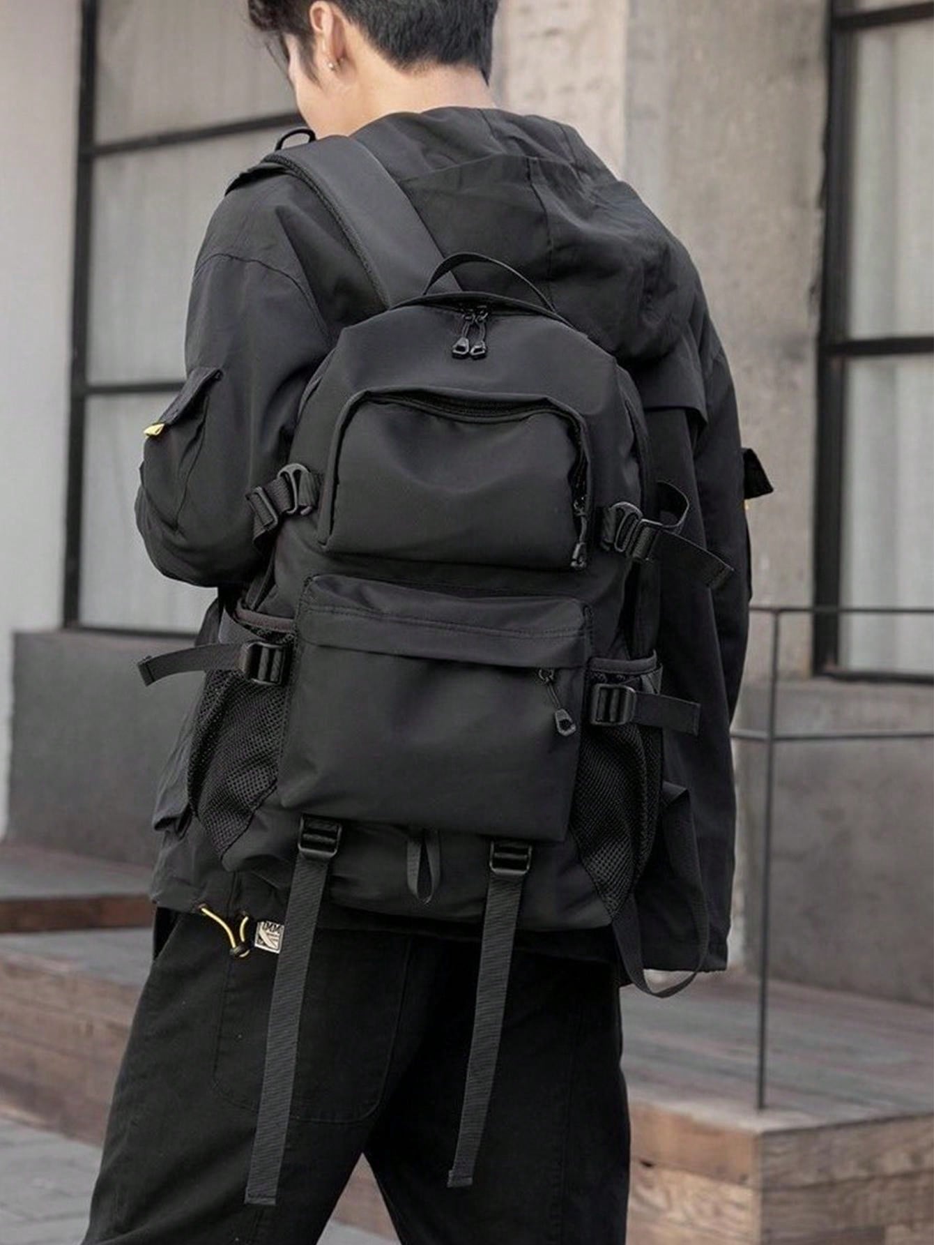 1Pc Solid Color Multi-Functional Oxford Cloth Backpack For Computer, Office, Commute, Japanese Style Trendy Function Backpack, Large Capacity Travel Bag For Middle/High School Students, Casual/Daily Use, Fits Men, Hiking, Sightseeing, Work Casual Backpack Lightweight