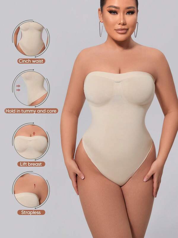 1Pc Women'S Strapless Solid Color Comfortable Tummy Control Slimming Waist Shaping Bandeau Tong,Suitable S A Base