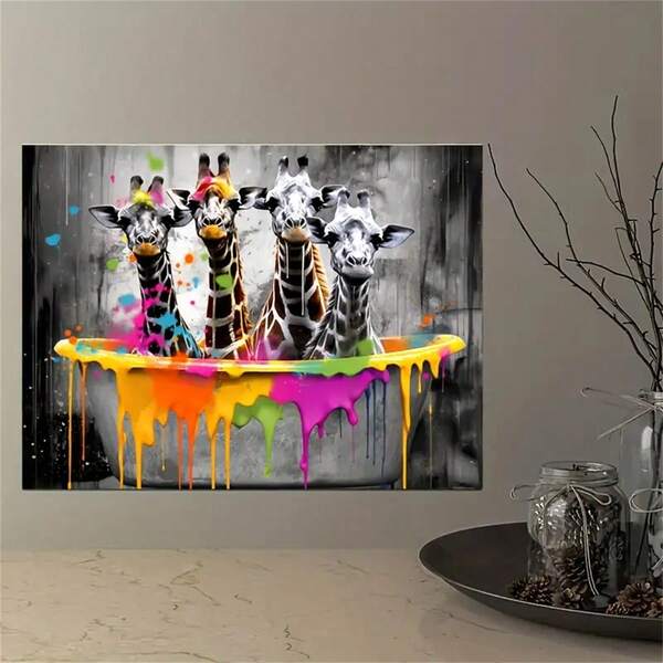 1Pcs,Canvas Print Poster, Graffiti Deer Canvas Wall Art, Artwork Wall Painting For Bathroom Bedroom Office Living Room Wall Decor, Home Decoration,No Frame
