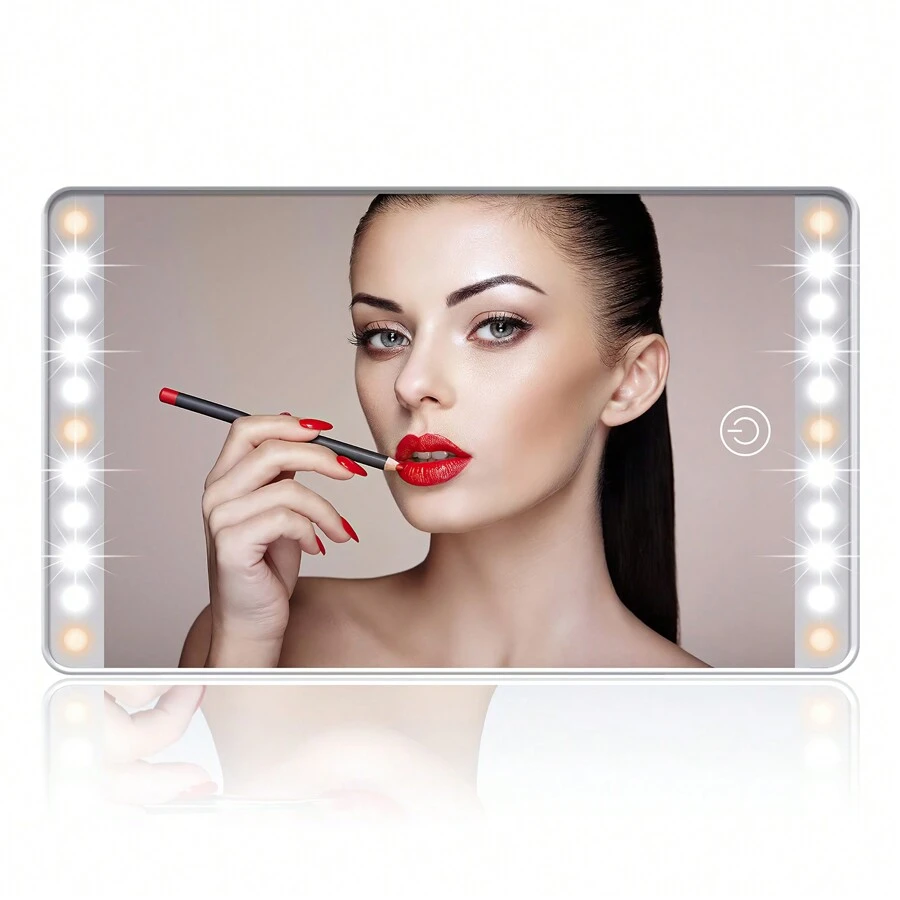 1Pcs Car Sun Visor Vanity Mirror, Rechargeable Makeup Mirror With 3 Light Modes & 22LEDs - Dimmable Clip-On Rear View Sun-Shading Cosmetic Mirror With Touch On Screen, Universal For Car Truck SUV (White)