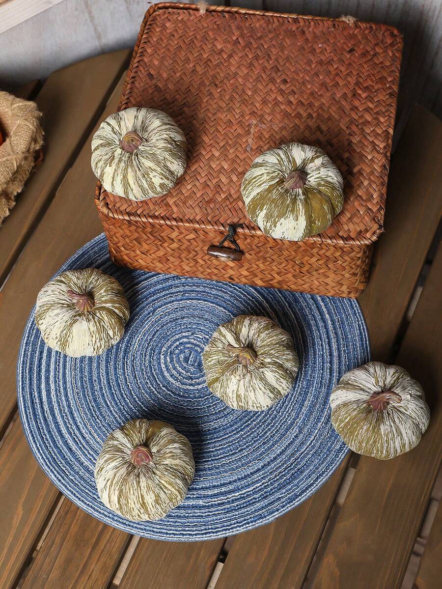 1SET 6PCS 1 set of 6. 6CM (H) artificial simulation realistic striped small pumpkins suitable for farm decoration, autumn harvest party desktop decoration, themed restaurant desktop decoration, home living room dining table entry shelf decoration, kitchen cabinet, bookstore bookshelf decoration, Halloween Christmas party decoration