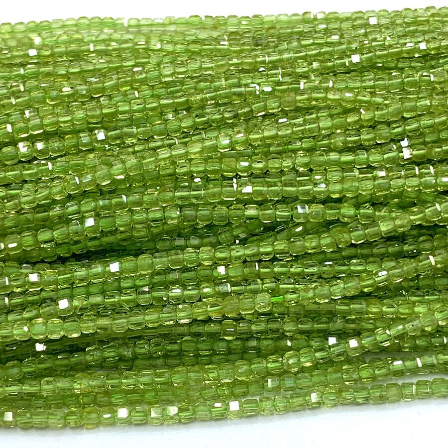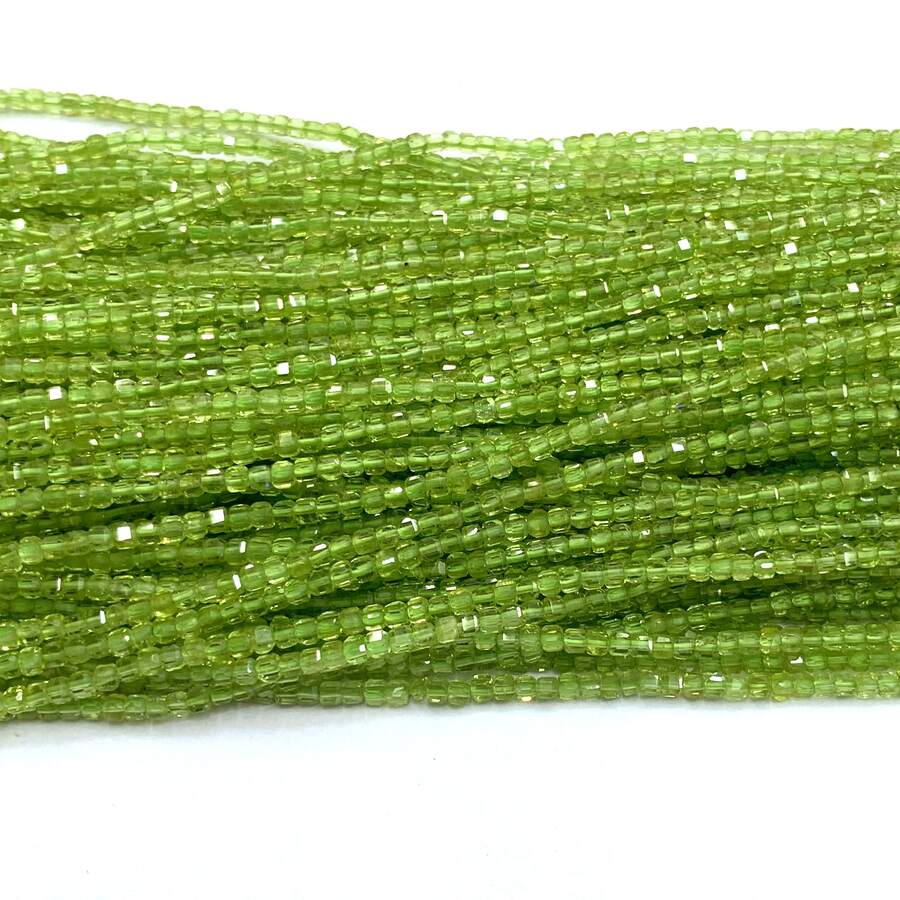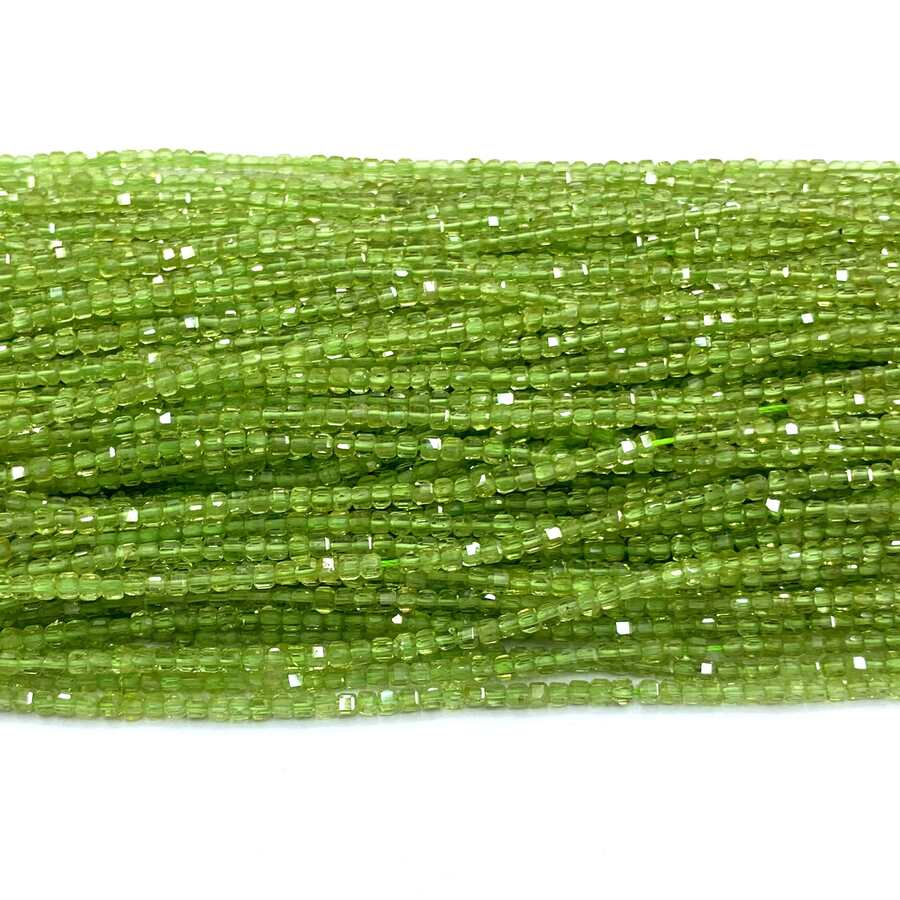 1Strand Real Natural Genuine Clear Green Peridot Faceted Cube Loose Stone DIY Jewelry Accessory Beads
