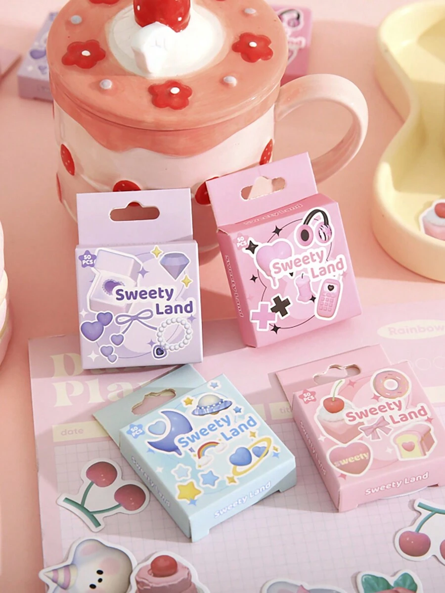 1box/25 Designs, Total Of 50pcs Randomly Shaped Stickers From Candy Land Collection For Scrapbooking, Journal Decoration, Envelope Sealing