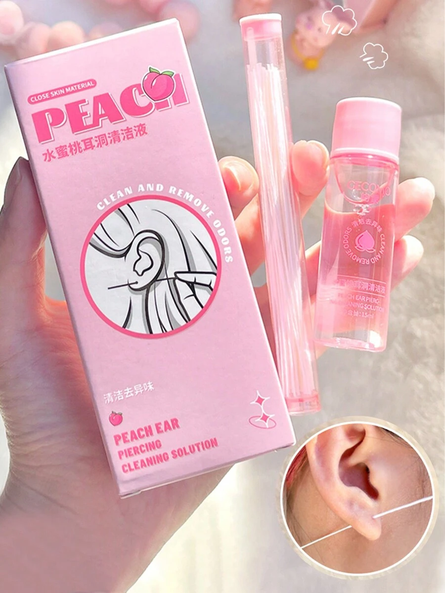 1box Peach Scented Ear Cleaning Solution & Clearing/prevent Blockage/remove Dirt Wipe Thread Set