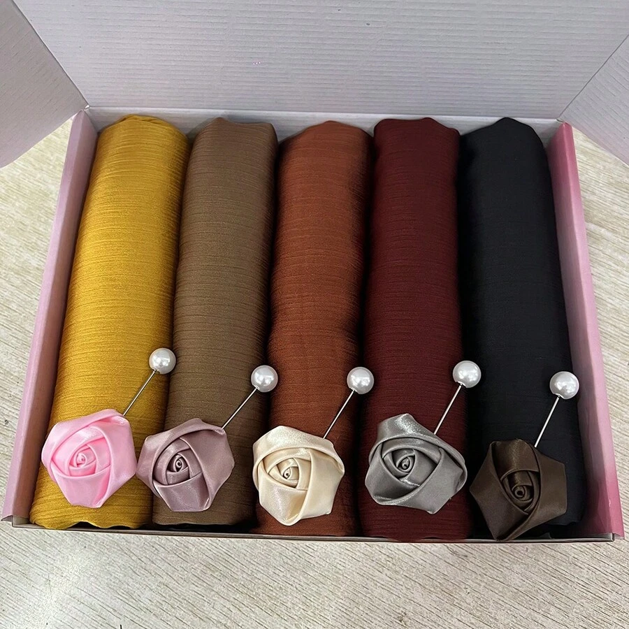 1box Women's Solid Color Chiffon Daily Headscarf Set