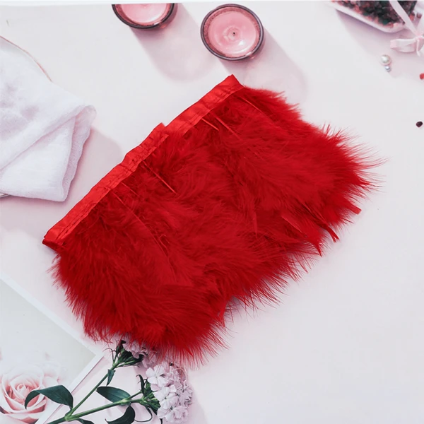 1m/Piece In-Stock Feather & Velveteen & Lace Border Multicolored Turkey Feather Accessory For Diy Handcrafts, Costume, Skirt Hem, Dance Performance, Headwear