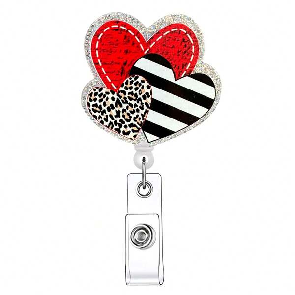 1p Valentine Themed Retractable Badge Reel,Name Badge Holder With ID Clip For Nurse Doctor Student Volunteer Employee,Valentine's Day Gift