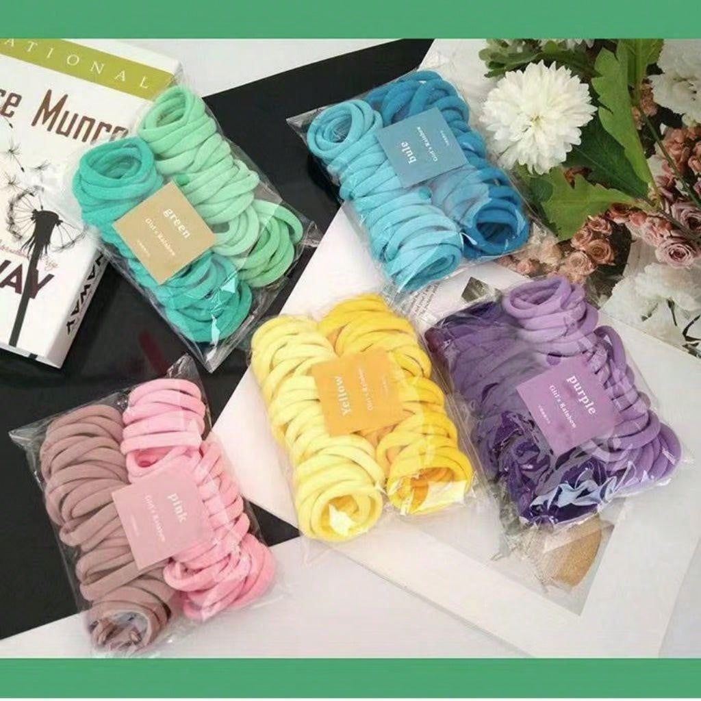 1pack 50pcs/Set Gradient Color No Crease Hair Ties, Candy-Colored Headbands, Elastic Towel Bands (Random Color)