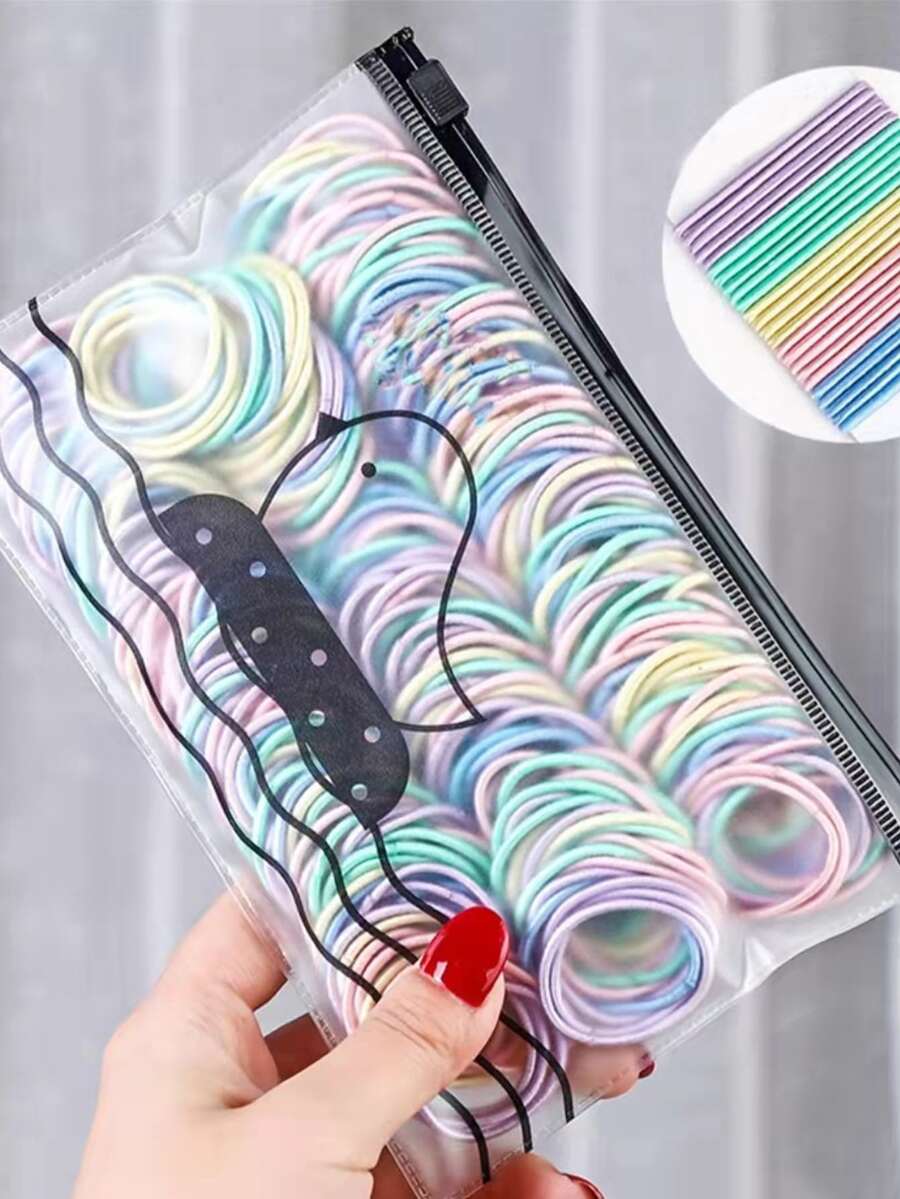 1pack Girls' Light Colored Thin Hair Ties, High Elasticity And Simple Design, Suitable For Street Style And Daily Use In Summer