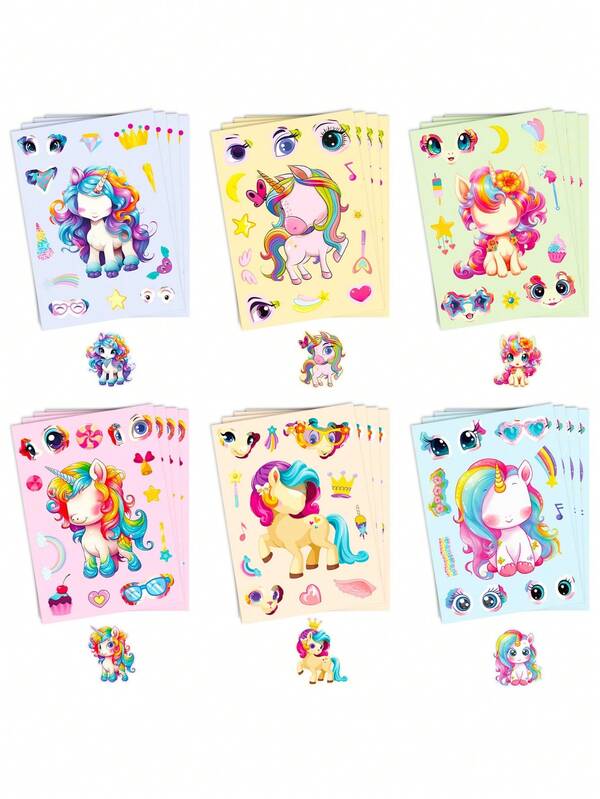 1pack/6pieces Rainbow Cartoon Pony Removable & Waterproof Face Stickers For Repeated Use