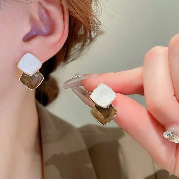 1pair 925 Silver Geometric Design Oil Drop & Colorful Diamond Decor French Elegant Earrings, Fashionable Daily Accessory For Women, Perfect Gift For Festival
