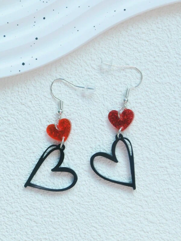 1pair Acrylic Hollow Out Heart Shaped Earrings For Valentine's Day Gift, Festival Dangle Ear Jewelry