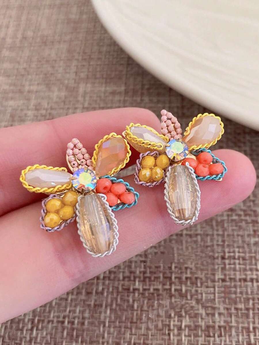1pair Alloy Faux Jade & Faux Pearl & Flower Design Stud Earrings For Ladies, Perfect For Date or Party