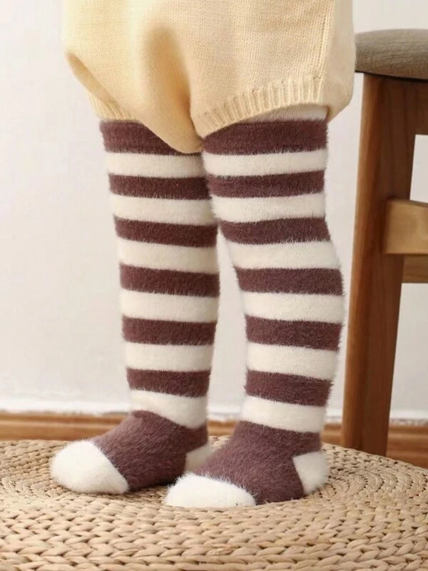 1pair Autumn & Winter Thickened Long Tube Socks With Anti-Slip Soles For Toddler Boys And Girls, Suitable For Daily Wear