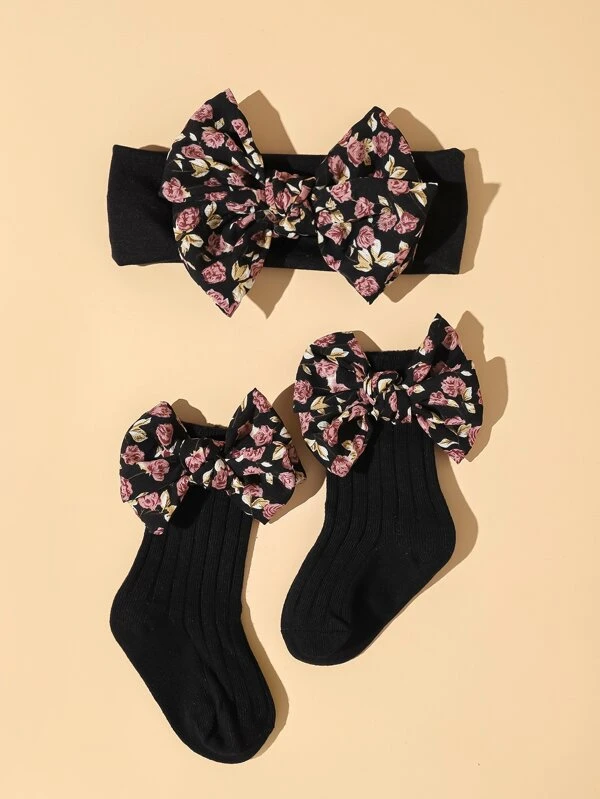 1pair Baby Bowknot Decor Socks & 1pc Hair Band