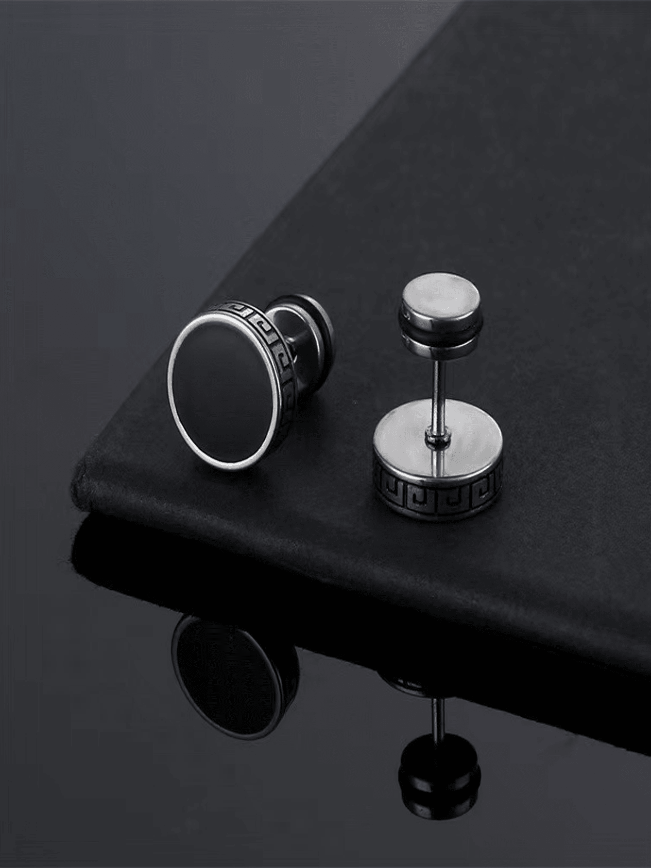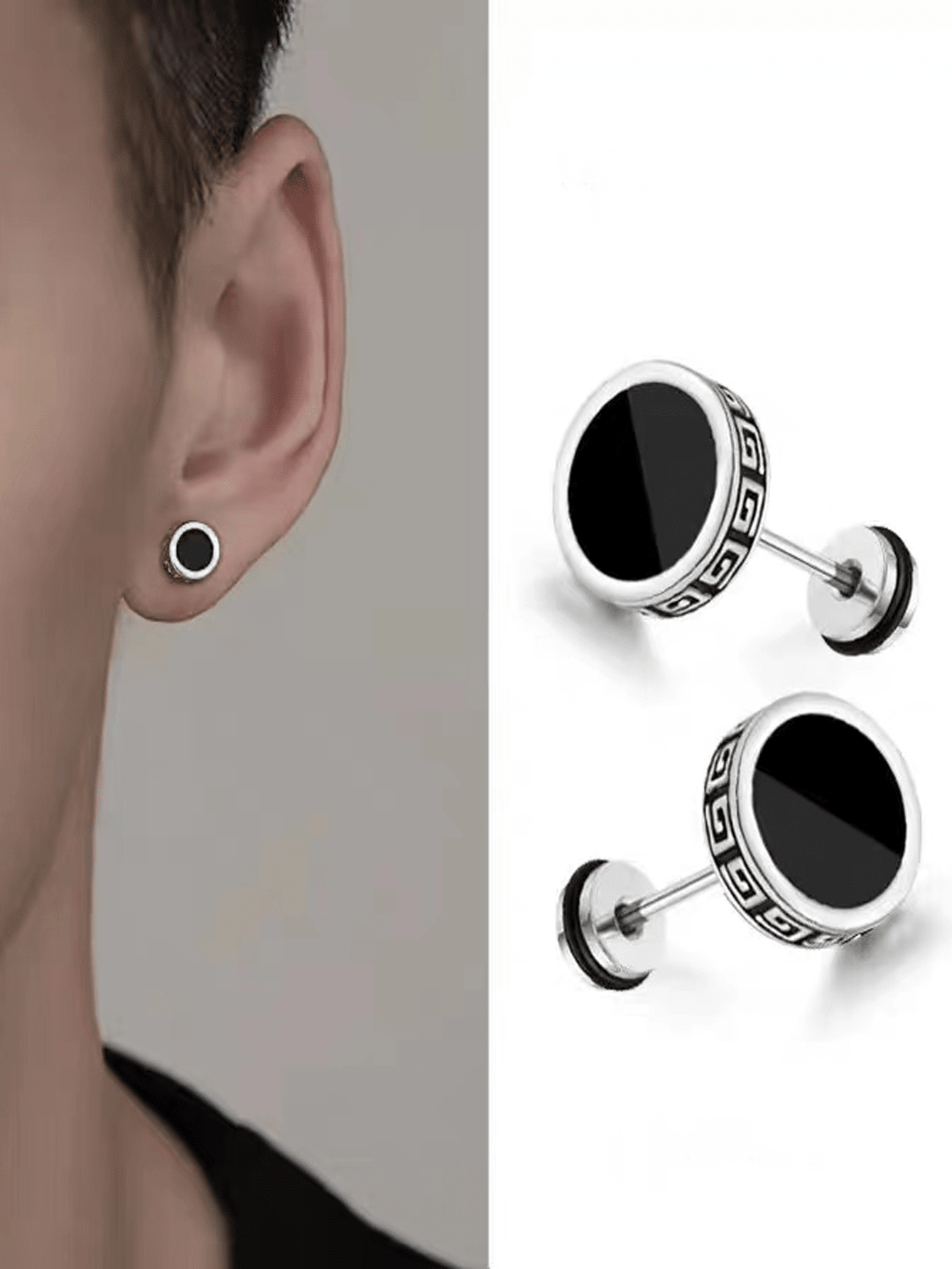 1pair Black Great Wall Pattern Earrings Suitable For Men And Women Daily Wear