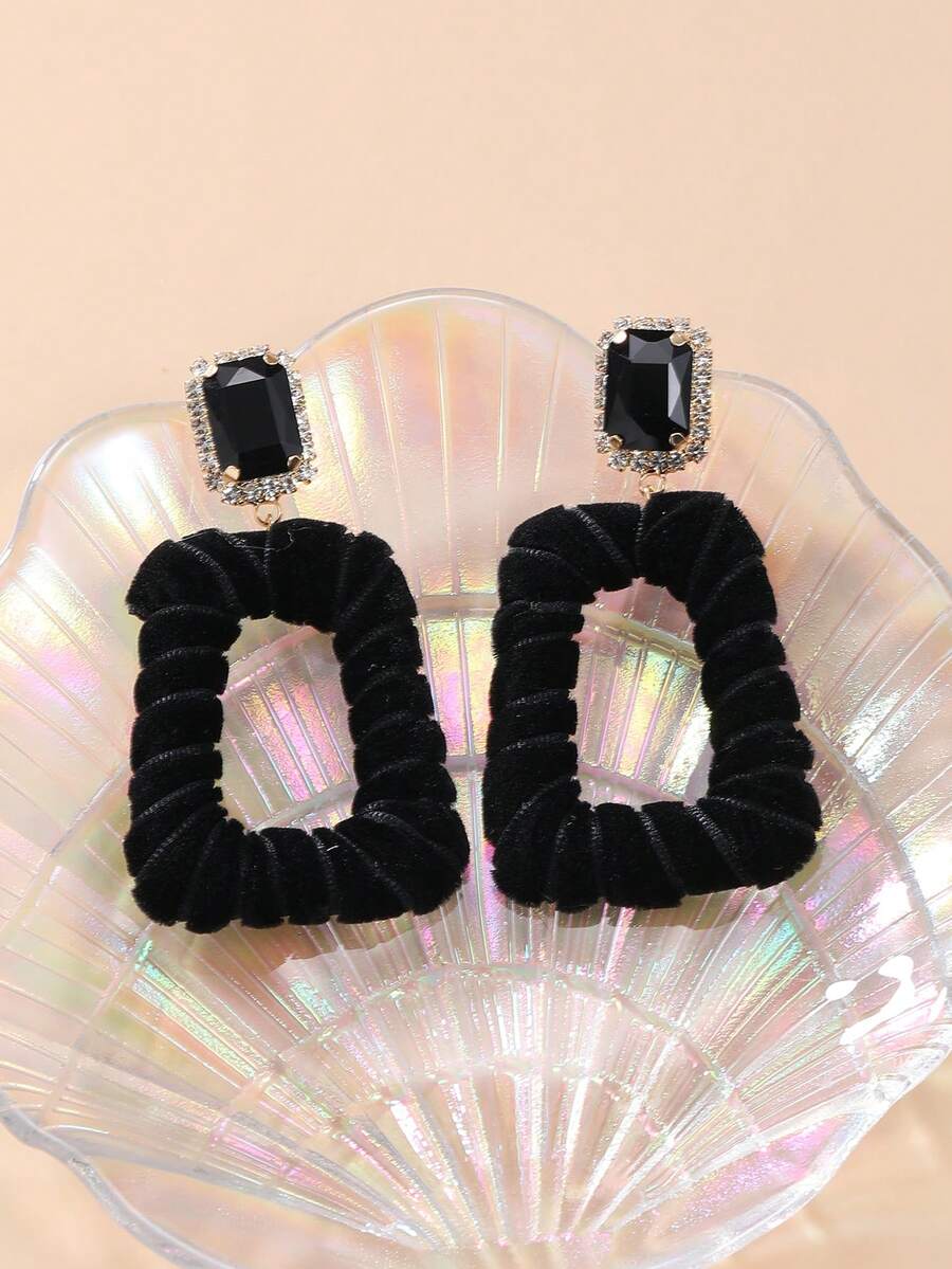1pair Bohemian Style Zinc Alloy & Velvet Cloth Geometric Earrings