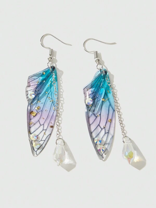 ROMWE Fairycore 1pair Boho Plastic Wings Design Rhinestone Decor Drop Earrings For Women For Daily Decoration