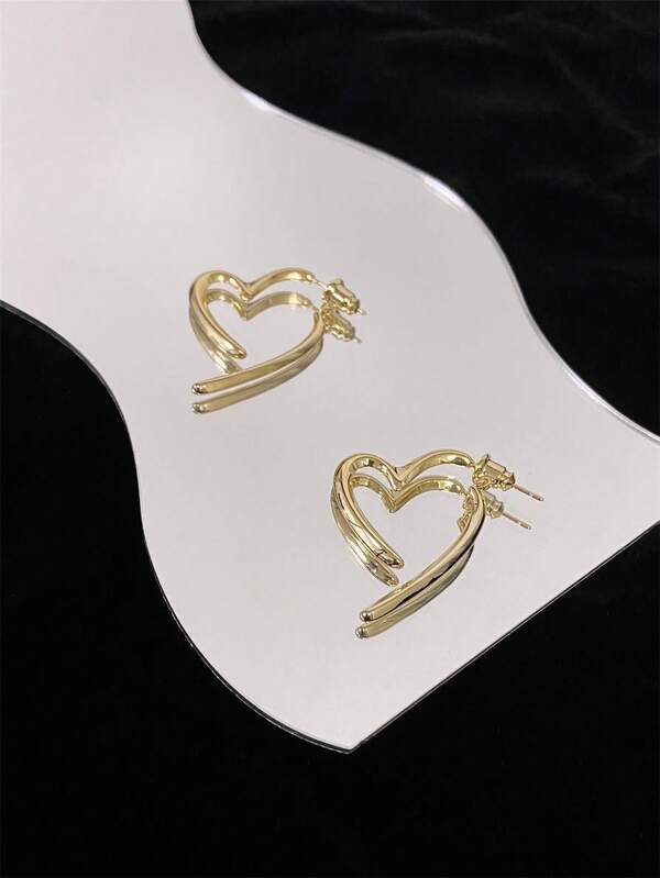 1pair Brass Metal Golden Crossed Heart Design Earrings, Elegant & Stylish, Ideal Valentine's Day Gift
