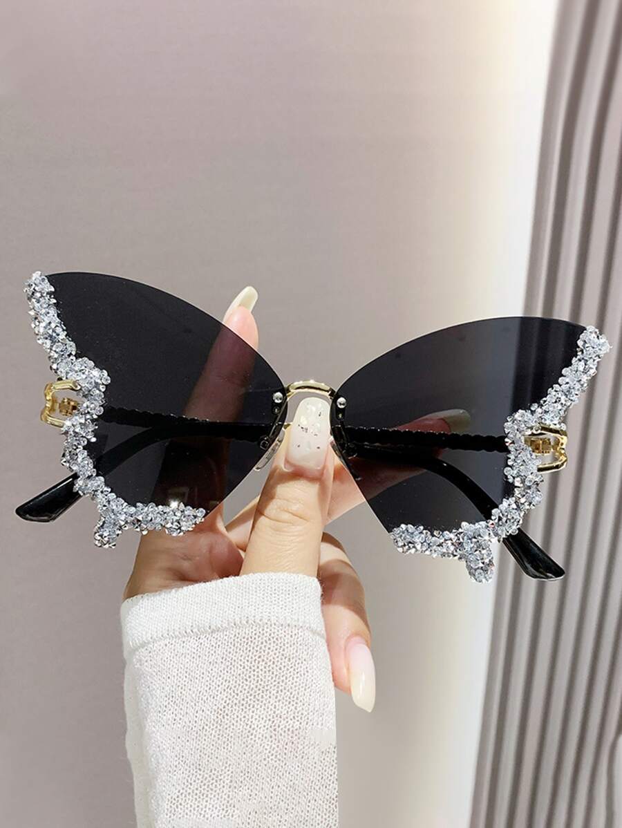 1pair Butterfly & Rhinestone Decor Luxury Y2k Sunglasses