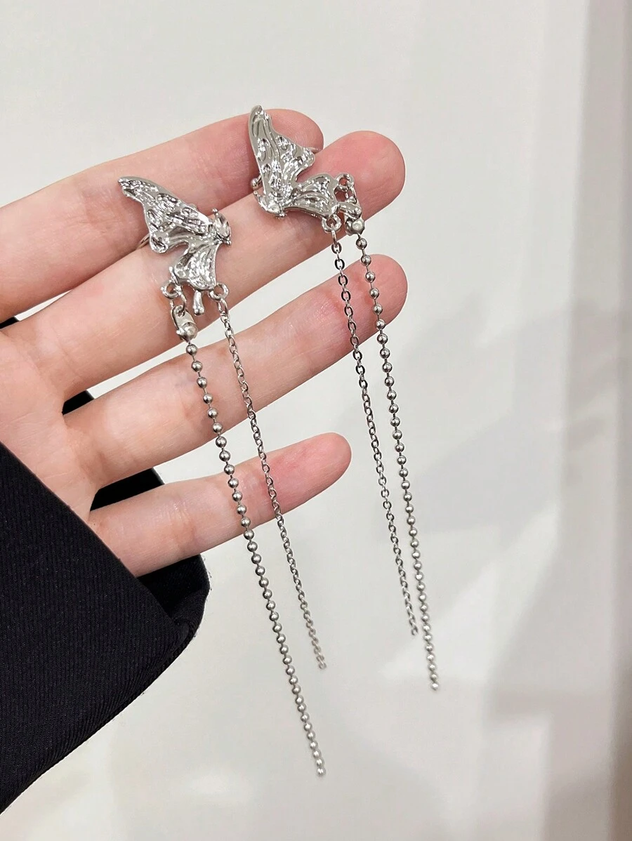 1pair Butterfly & Tassel Non-piercing Ear Cuff, Metal Cold Wind Earrings With High-grade Elf Design, Suitable For Girls To Take Videos, Wear Daily And Match Outfits