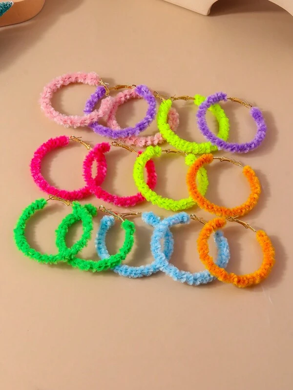 1pair Candy-colored Cool Woolen Coil Earrings