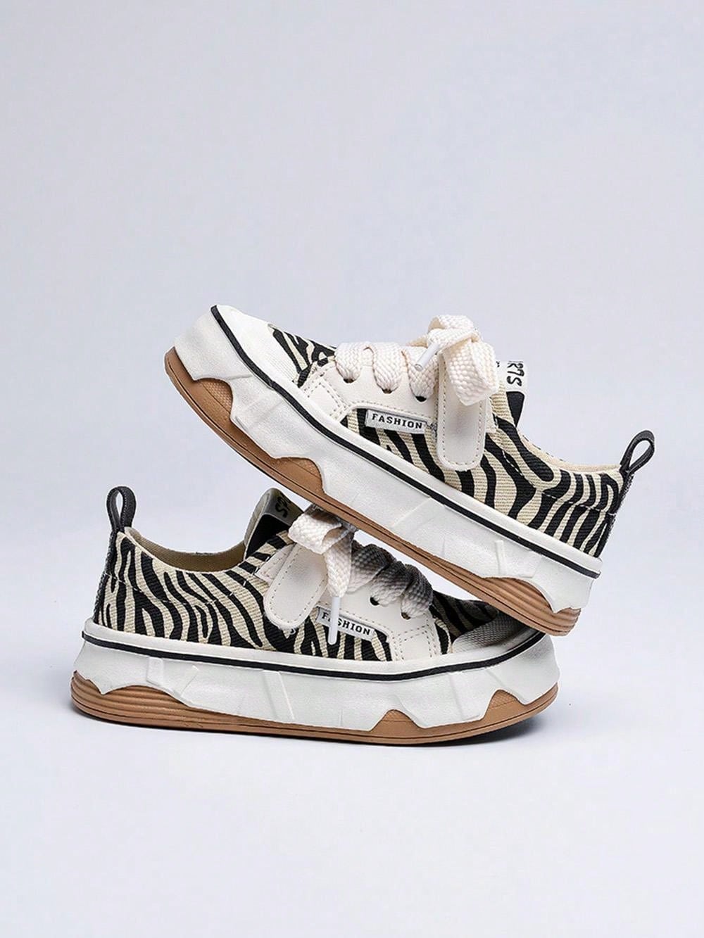 1pair Canvas Sneakers With Soft Sole, College Style, For Boys And Girls