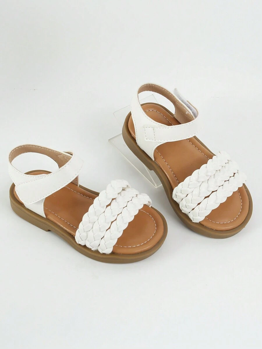 1pair Children'S White Sandals For Toddler Girls' Summer Flat Shoes, Little Kids' Shoes