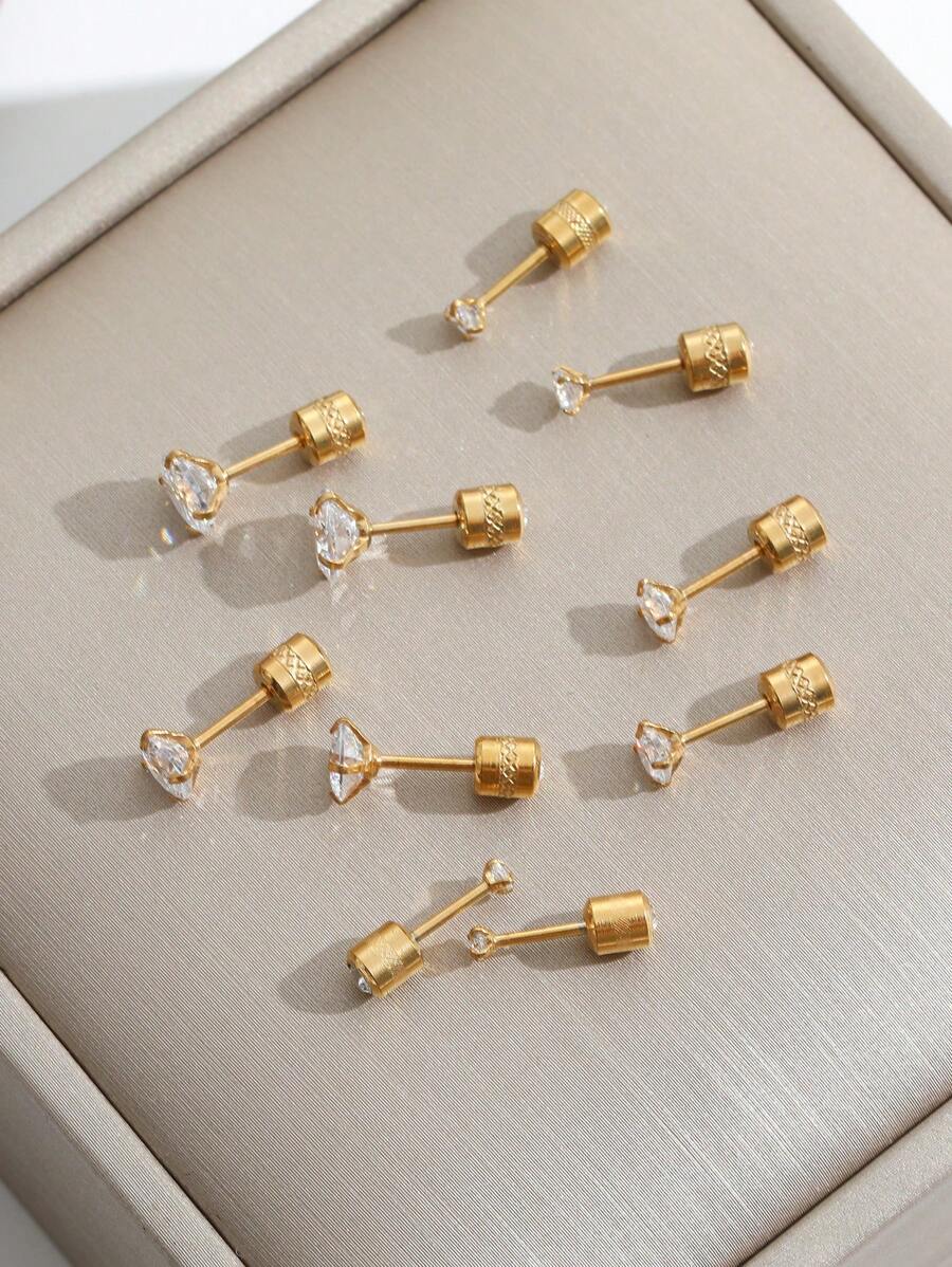 1pair Circular Double-end Cubic Zirconia Stainless Steel Ear Studs For Both Men And Women