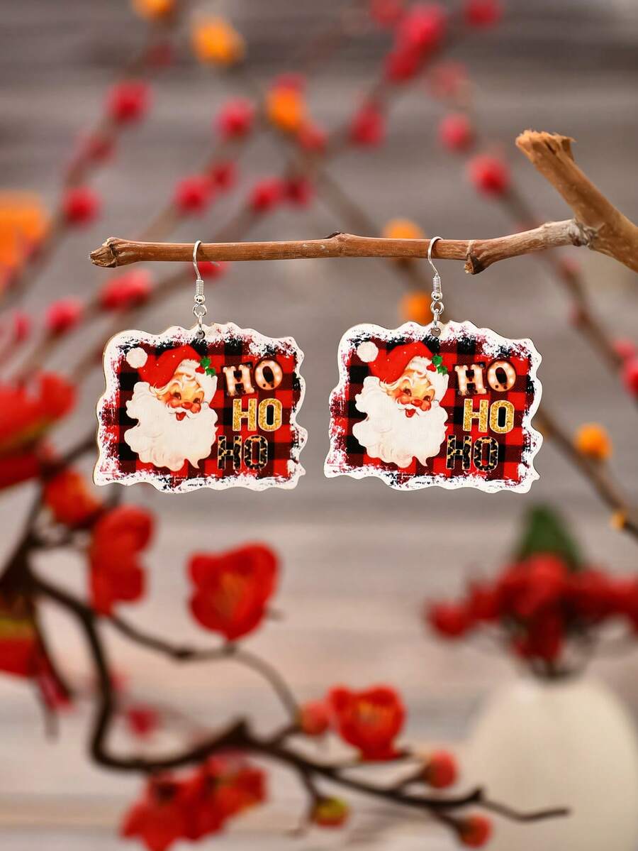 1pair Colorful Mustache & Christmas Santa & Ho Letter Design Pendant Earrings For Women, Winter