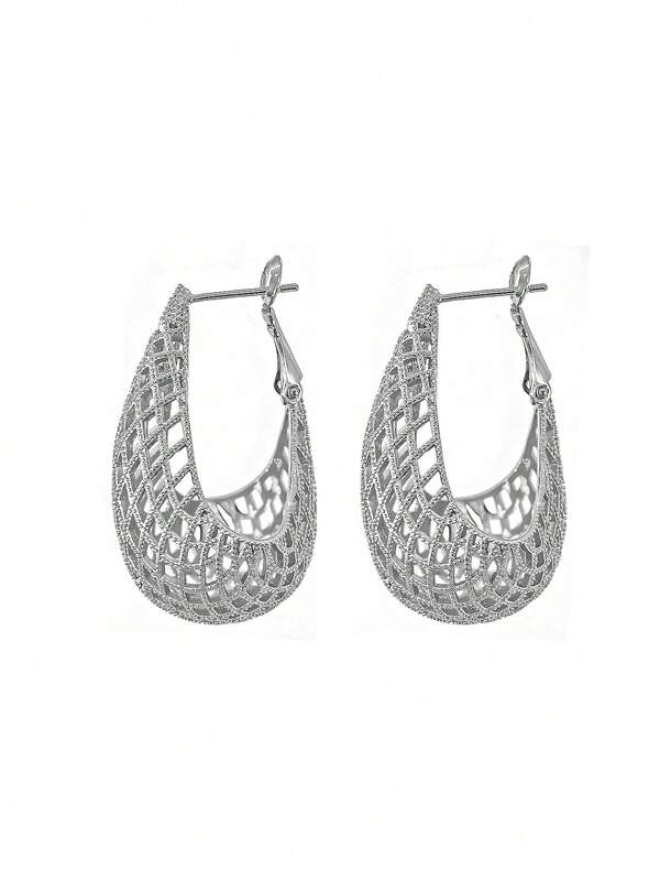 1pair Copper Plated White Gold Earrings Hollow Out Mesh & Geometric Shaped Minimalist Fashion Jewelry Pendant For Women, Gift For Festival/Birthday