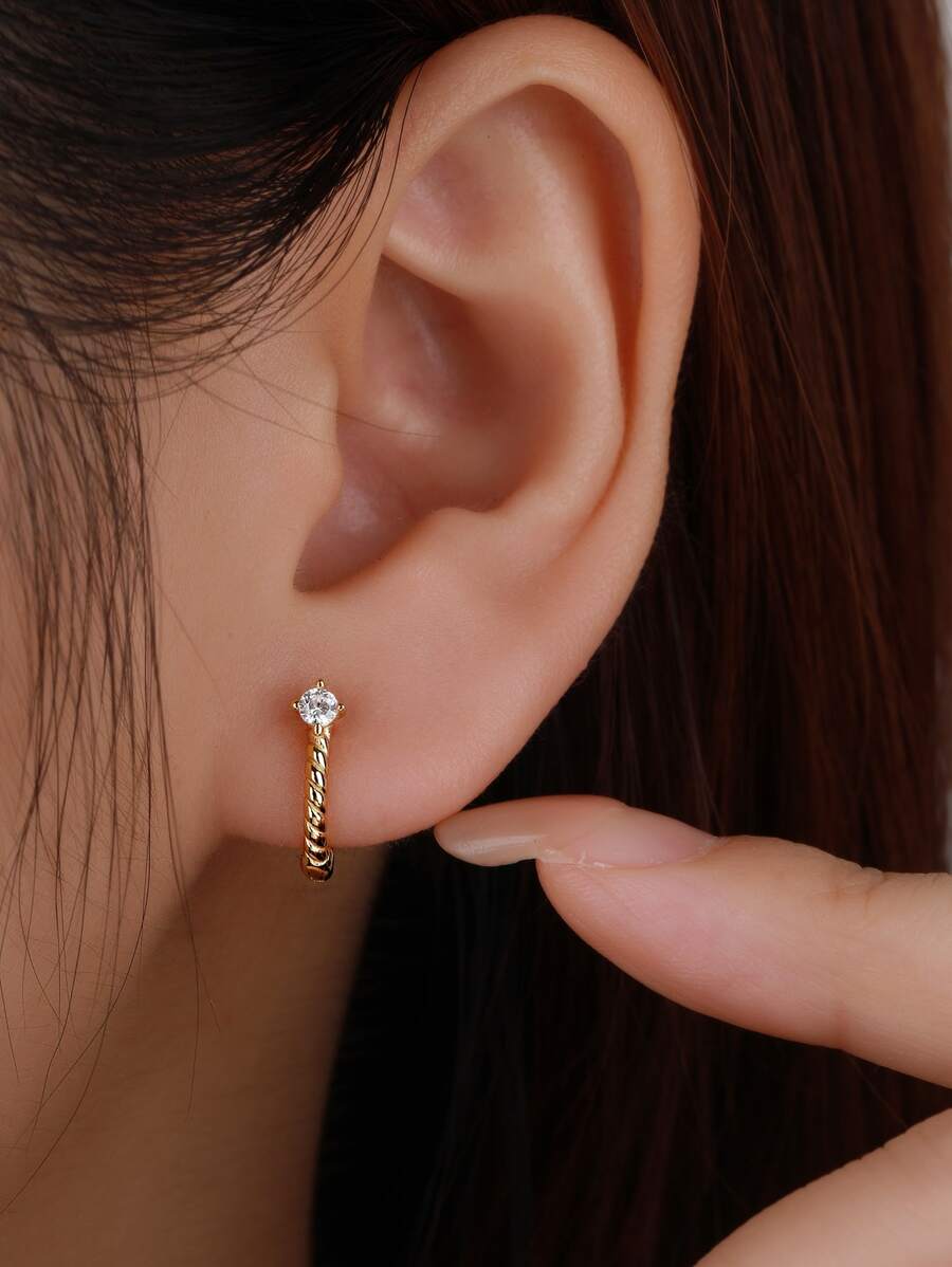 1pair Cross-Border New Fashion Small And Unique Fresh And Vintage Twist Braided & Micro-Inlaid Cubic Zirconia Women'S Earrings Suitable For Daily Commute Wear