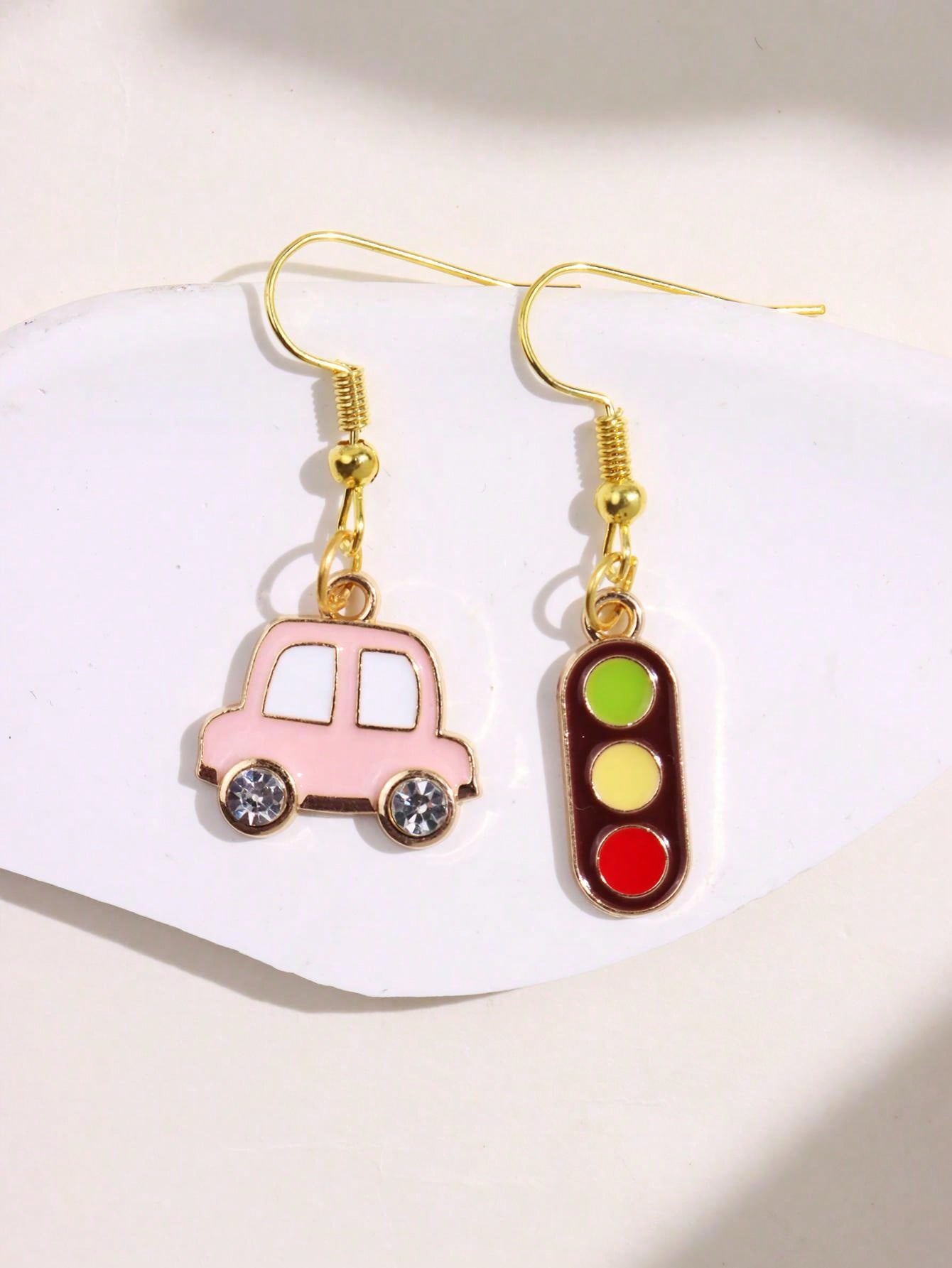 1pair Cute & Funny Fashionable Oil Drop Mini Car Red Green Light Dangle Earrings For Women