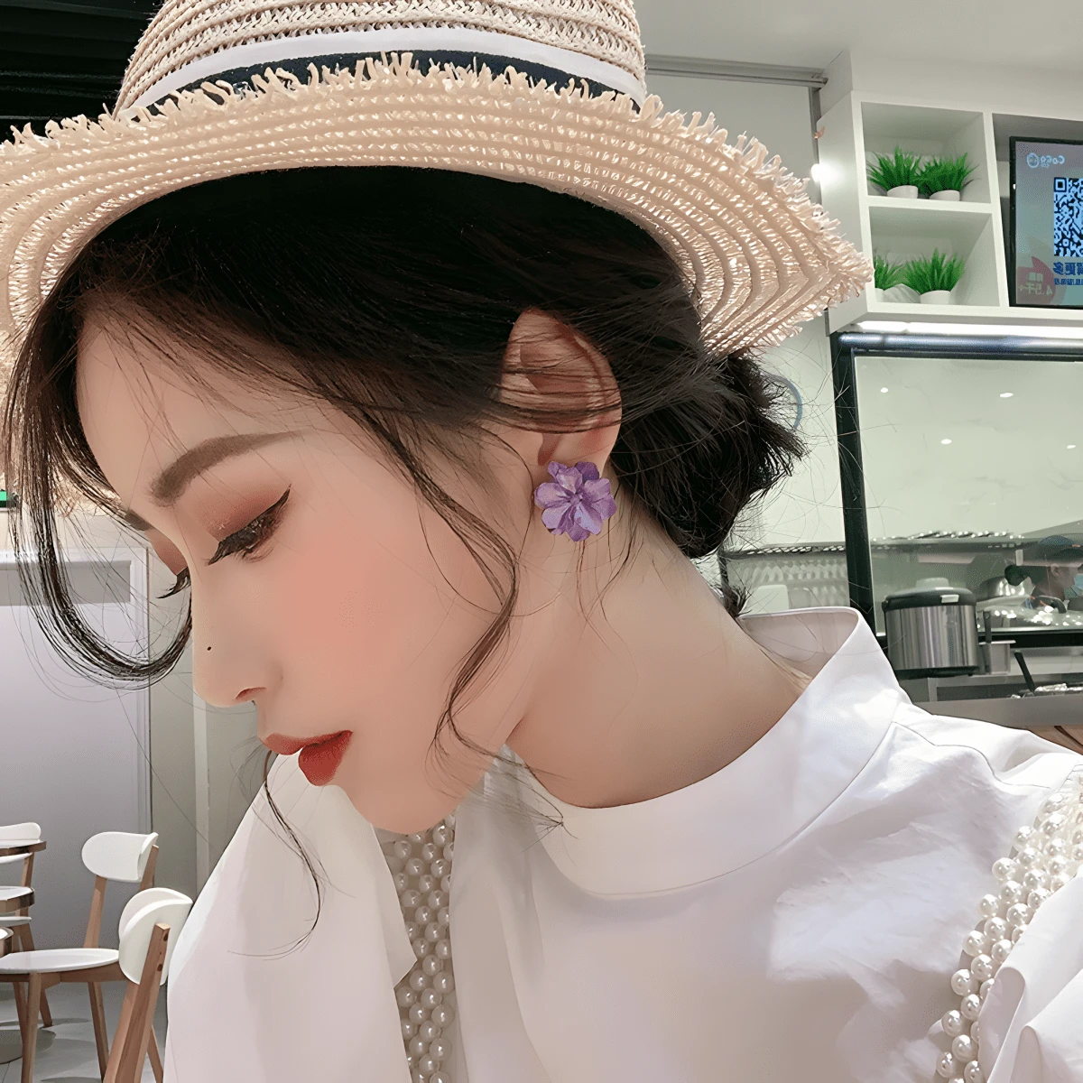 1pair Cute And Charming Purple Flower Stud Earrings, Korean Style, Vintage, Hong Kong Style, French Earrings For Dating Or Daily Use