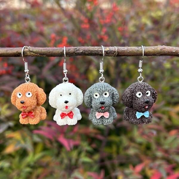 1pair Cute Teddy Dog Shape Resin Dangle Earrings, Diy Jewelry Accessories, Pet Lover Gift For Her