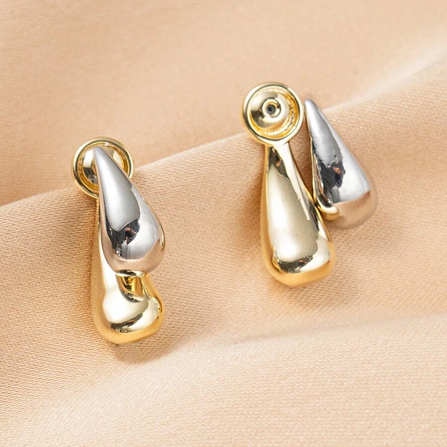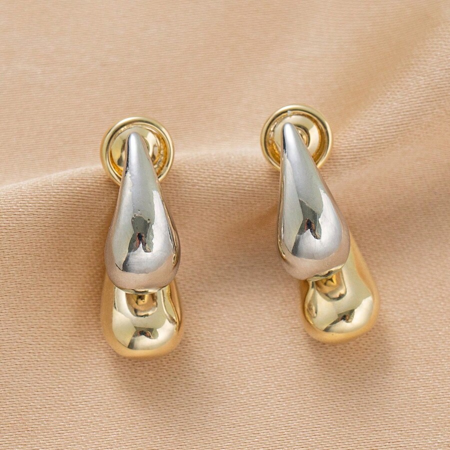 1pair Delicate Water Drop Design Ear Studs With Silver Pin And Two-Tone Plating For Women'S Daily Wear