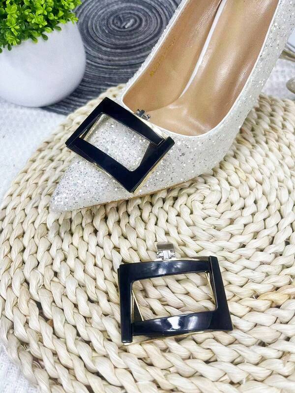 1pair Detachable Double Layer Shoebuckles, Black Glossy All-Match Fashionable Shoe Accessories Suitable For High Heels