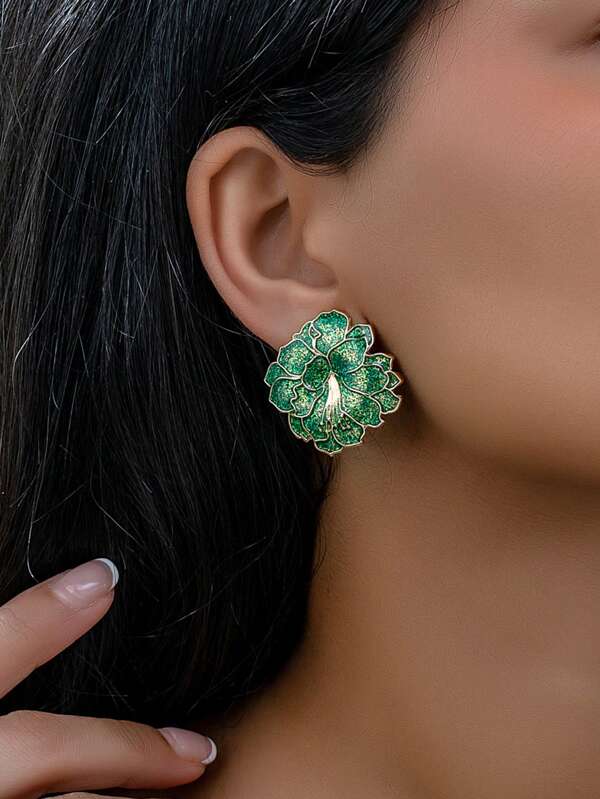 1pair Elegant Simple Sweet Enamel Flower Clip-On Earrings For Women, Suitable For Various Occasions Such As Festival, Birthday, Date, Dance, Banquet, Wedding, Party, Vacation, Street, Business, Everyday Commute, Etc.
