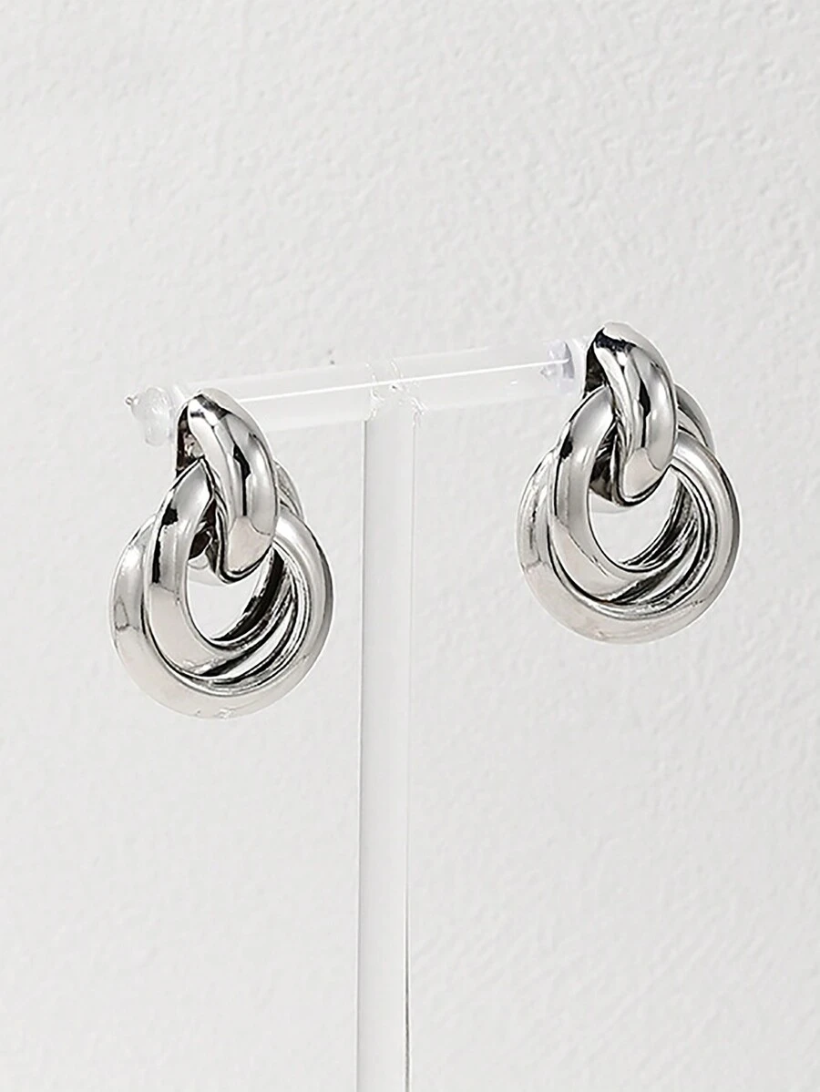 1pair European And American Fashionable Minimalist Geometric Multi-Layer Circle Stud Earrings For Women, Festival Gift