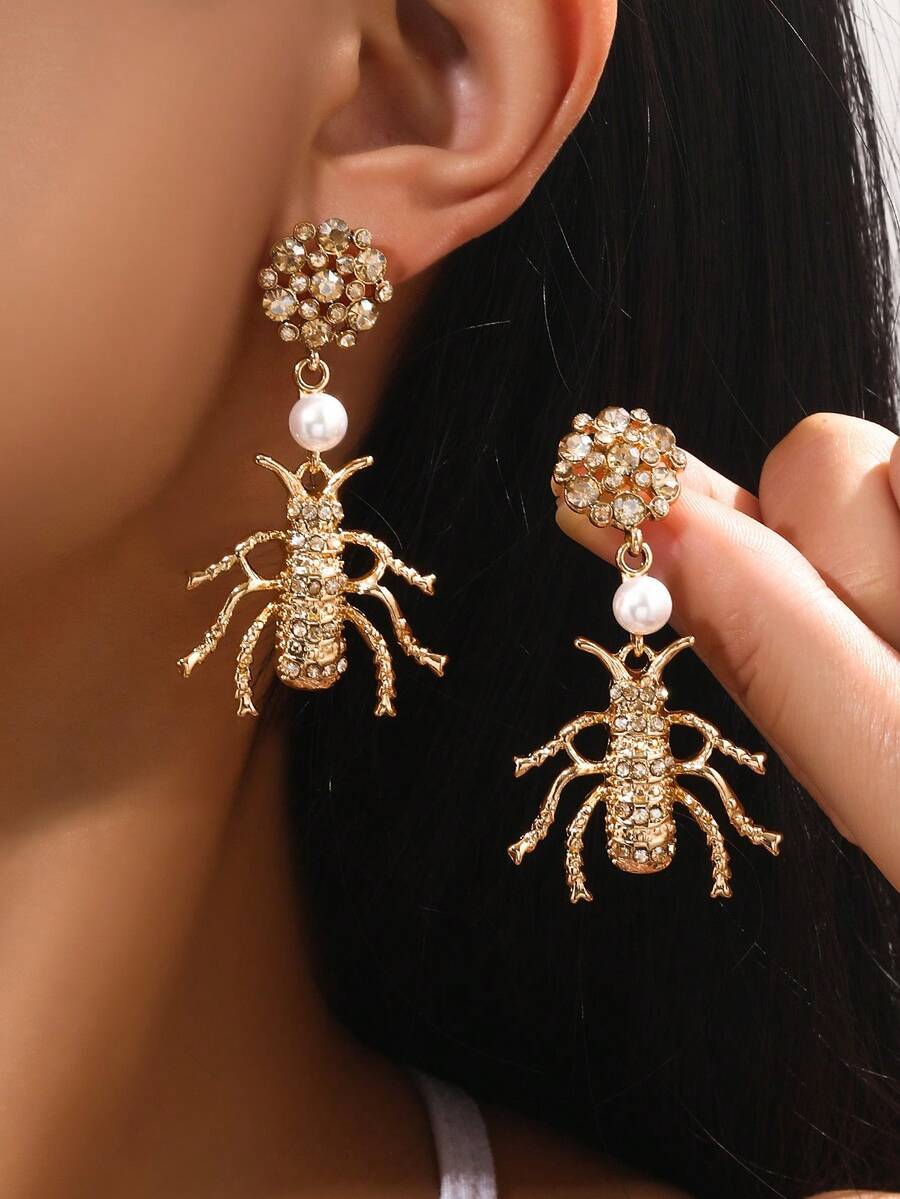 1pair European And American Style Exaggerated Insect Shaped Rhinestone Ear Cuff For Women