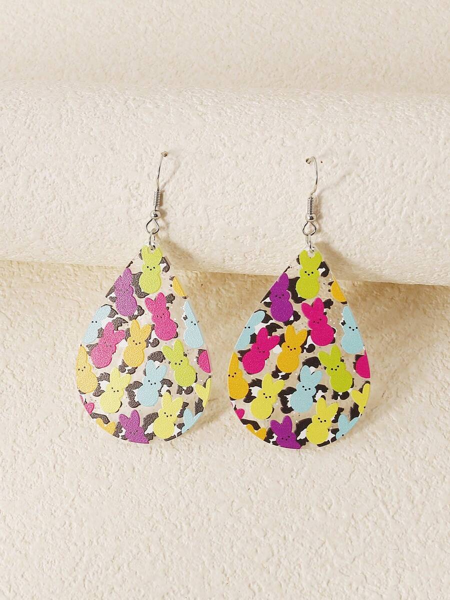 1pair European And American Style Fashionable Colorful Rabbit & Drop Shape Women'S Earrings For Everyday Wear