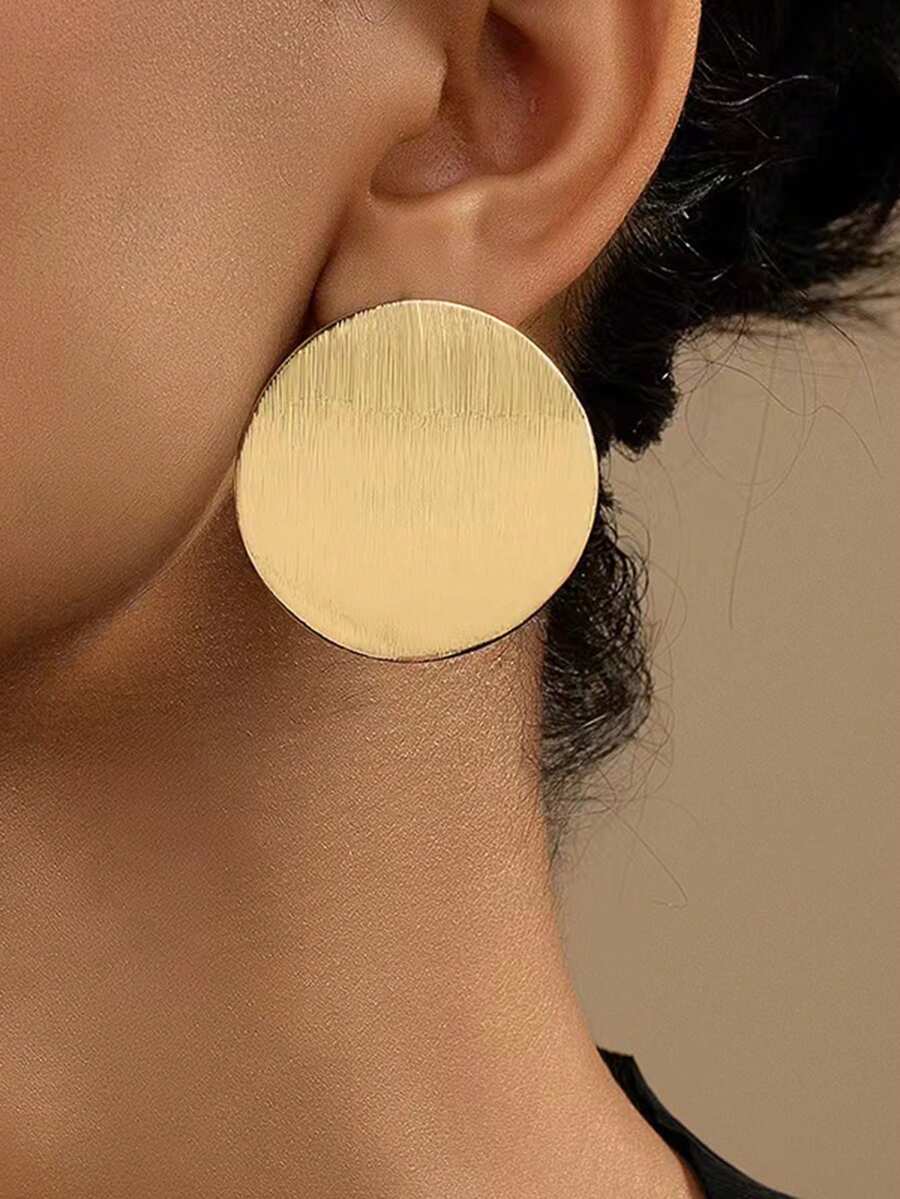 1pair European And American Style Simple Metal Geometric Circle Stud Earrings